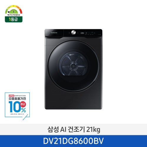 [삼성전자] 삼성 AI 건조기 21kg 1등급 블랙 캐비어 DV21DG8600BV [페이]