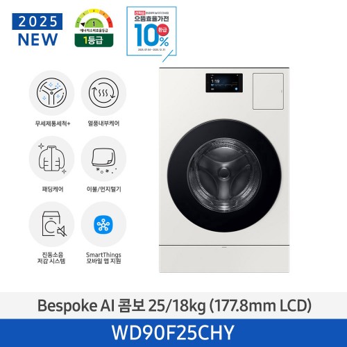 [삼성전자] 비스포크 AI 콤보 (세탁25kg+건조18kg) [177.8mm LCD] 1등급 그레이지 WD90F25CHY [페이]