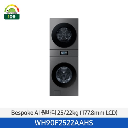[삼성전자] 비스포크 AI 원바디 세탁기(25kg)+건조기(22kg) 1등급 다크스틸 WH90F2522AAHS [페이]