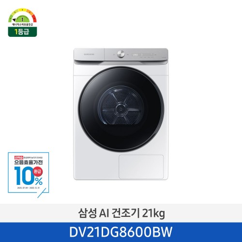[삼성전자] 삼성 AI 건조기 21kg 1등급 화이트 DV21DG8600BW [페이]