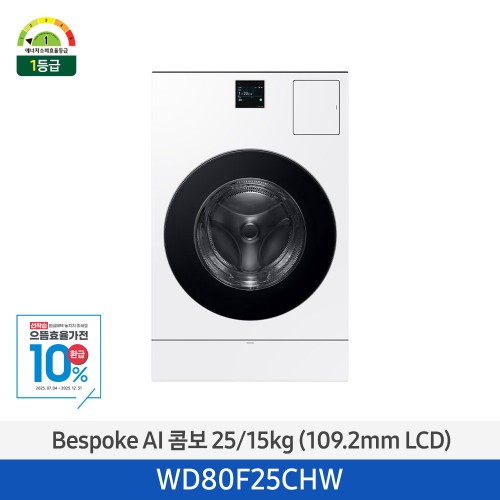 [삼성전자] 비스포크 AI 콤보 (세탁25kg+건조15kg) [109.2mm LCD] 1등급 화이트 WD80F25CHW [페이]